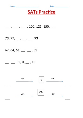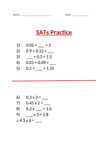 Math worksheets for sats printable